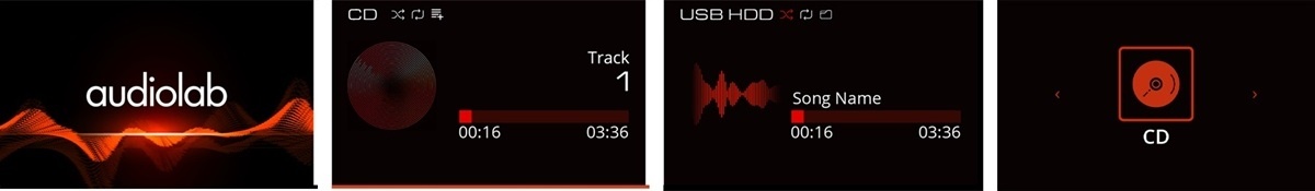 CD transport a USB HDD přehrávač. Podporující formáty CD, CD-R, CD-RW, digitální vyrovnávací paměť,480 x 800px WVGA full view IPS LCD screen, toroidní transformátor.