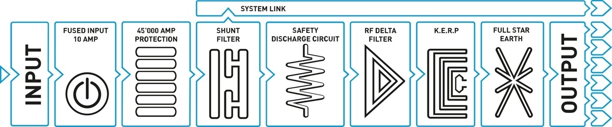 Zásuvková lišta s RFI filtrem V5 Polaris se vyznačuje jedinečnou topologií delta filtru, který má desetkrát větší útlum rušení než je doporučený standard. Filtr dosahuje útlumu více než 20 dB na 1 kHz (referenční zátěž 600 Ohmů), a 42 dB na 10 kHz. Většina předních odborníků se shoduje, že zvuk začíná ovlivňovat vysokofrekvenční rušení od frekvence 10 kHz (RFI). Průnik rušení do užitečného signálu záleží na schopností napájecího zdroje zesilovače potlačit rušení přicházející z napájecí sítě. Napájecí zásuvková lišta V5 Polaris zajišťuje ve své kategorii prvotřídní výkon v čištění napájecího napětí v běžném režimu (RFI) i v potlačení diferenciálního rušení. Samotná deska s plošnými spoji (PCB) s elektrickými obvody má oproti stadardu dvojnásobnou tloušťku měděné vrstvy, která je pro lepší vodivost postříbřená.